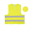 Fényvisszaverő mellény 100% poliészter hálós anyagból. Két fényvisszaverő csík van a test körül. Tépőzárral rögzíthető. Sarok. I.EN 13688:2013.