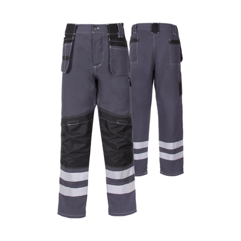 PROMONTER COTTON szerelőnadrág. Szakadás- és kopásálló pamutszövetből készült nadrág - 100% pamut, anyagsúly 250g/m2. 8 funkcionális zseb, köztük két akasztózseb további rekesszel, két hátsó zseb, egy vonalzózseb, egy rakodózseb, valamint a további kénye