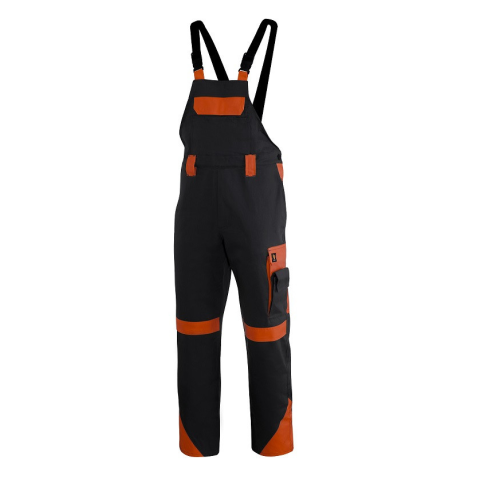 Proplus dungarees - fő szövet: 100% pamut, anyagsúly 250 g/m2, színes betétek: 65% poliészter, 35% pamut, anyagsúly 250 g/m2. 10 funkcionális zseb, köztük egy hátsó zseb, 2 elülső zseb (egy dupla), 4 oldalzseb, köztük egy zseb telefonnak és vonalzónak, eg