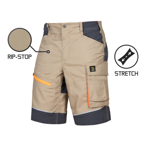LIDO rövidnadrág Tépés- és kopásálló RIP-STOP alapanyagból készült, amelynek összetétele: 63% poliészter, 35% pamut és 2% spandex, 240 g/m² anyagsűrűséggel. Továbbá „4-way stretch” rugalmas szövetet is tartalmaz, amelyet outdoor ruházatban használnak, öss
