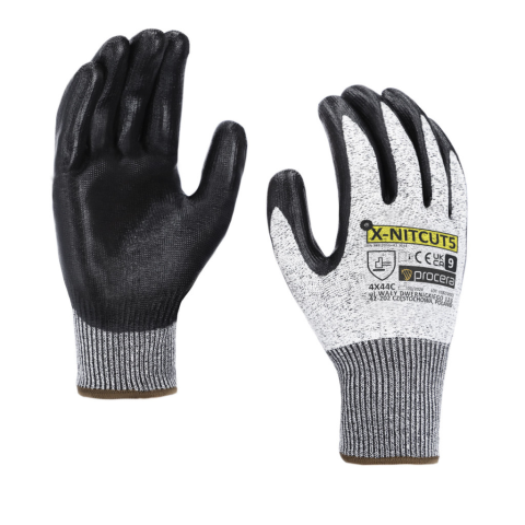 HPPE szálak és üvegszálak keverékéből készült, nagy vágásállóságú X-NITCUT5 kesztyű, markolatrészében habosított nitrillel bevonva. Nagyon jó érzés a tartott tárgyról. Védelmet nyújtanak az éles elemek és vágások ellen. Kopás-, szakadás- és szúrásállóság