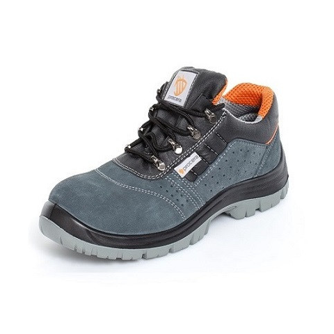 GRAF O1 biztonsági cipő orrvédő nélkül. A lábbeli felsőrésze bársony bőrből készült. A talp kétrétegű PU/PU poliuretánból készült, antisztatikus. A külső réteg keményebb, a belső réteg lágyabb. Energiaelnyelés a sarok területén. Csúszásgátló talp. Szintet