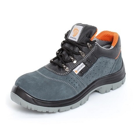 GRAF S1 biztonsági cipő fém védőujjvédővel. A lábbeli felsőrésze bársony bőrből készült. A talp kétrétegű PU/PU poliuretánból készült, antisztatikus. A külső réteg keményebb, a belső réteg lágyabb. Energiaelnyelés a sarok területén. Csúszásgátló talp. Szi