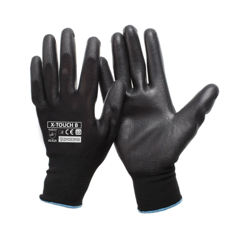 1 kép Procera Védőkesztyű, X-Touch poliuretánba merülve, szakadás- és kopásálló, fekete, 7/S méret