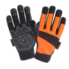 Kiváló minőségű, puha és strapabíró szintetikus bőrből készült X-ACTIVE kesztyű markolatrészében, felső része narancssárga elasztikus spandex anyagból. További neoprén betét a bokán. A leginkább kitett helyeken számos további megerősítés és varrás véd a k