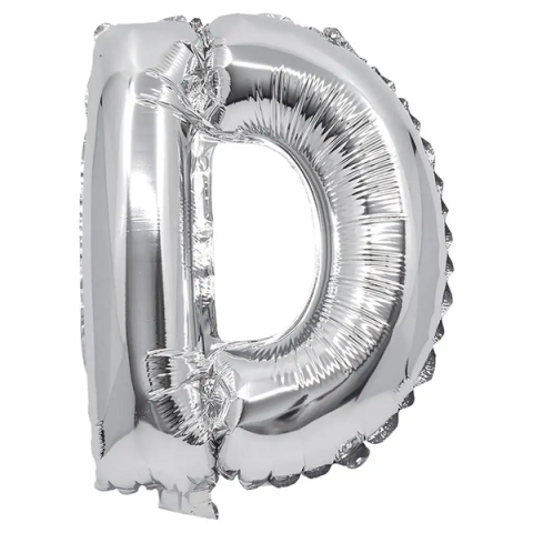 Betű formájú fólia lufi ezüst színben – D betű 32cm