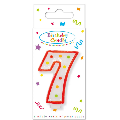 Varázsold különlegessé gyermeked hetedik születésnapját ezzel a színes, pöttyös 7-es számú szülinapi gyertyával! A vidám, fehér alapú gyertyát színes pöttyök és piros szegély díszíti, amely remekül mutat bármilyen tortán – legyen az házi készítésű vagy cukrászdából rendelt. A gyertya nemcsak dekorációként szuper, de igazi ünnepi hangulatot is varázsol a gyerty