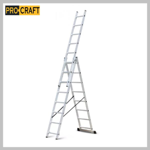 Procraft háromrészes alumínium létra a sokoldalú felhasználáshoz tartós és könnyű alumíniumból. Speciális csúszásmentes lábakkal van felszerelve, amelyek a legmagasabb biztonsági szintet biztosítják. A létra megfelel az európai biztonsági szabványoknak, az EN131 szerint jóváhagyott és tanúsított. Robusztus és minőségi felépítés magas fogantyúval.A létra a minőségre és a biztonságra fektetve a hangsúlyt.Technikai paraméterek:Terhelhetőség: max.150kgTan