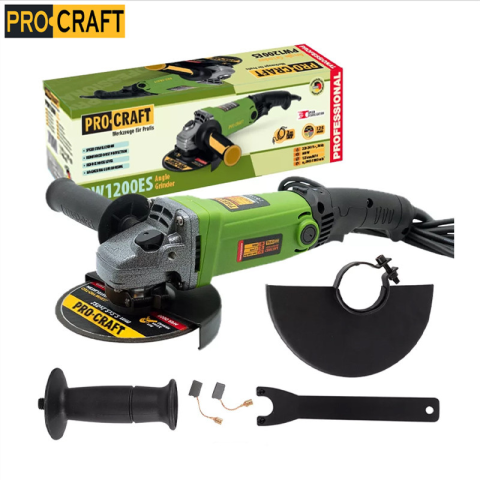 Procraft sarokcsiszoló, 125mm PW1200ES A csomag tartalma: szénkefék, szerelőkulcs Sebességszabályozás és -stabilizálás. Sima indítás Teljesítmény: 860W Lemezátmérő: 125mm Sebesség: 3900-11000/perc Súly: 2,1kg Feszültség 230 V Tápfeszültség bemenet 860