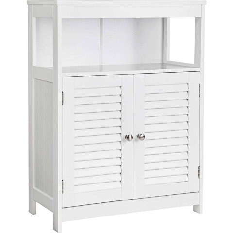 Fürdőszobai szekrény fehér színben, praktikus tároló megoldással 60x30x80 cm Ez a fehér fürdőszobai szekrény tökéletes megoldás a fürdőszobai rendszerezésre és a tárolóhely bővítésére. E1 osztályú MDF forgácslapból készült, így penészálló és könnyen...