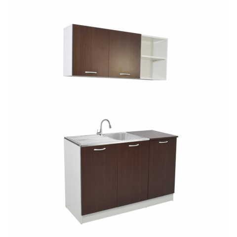 PD L120 alapkonyha egy funkcionálisan kiváló konyhabútor a kis helyiségekre szabva! Ez a konyhablokk fehér-wenge színösszeállításban kapható (bútortest fehér, ajtófrontok wenge színűek). Kiváló lakótelepi konyhákba, kis konyhákba, konyhafülkékbe, nyar...
