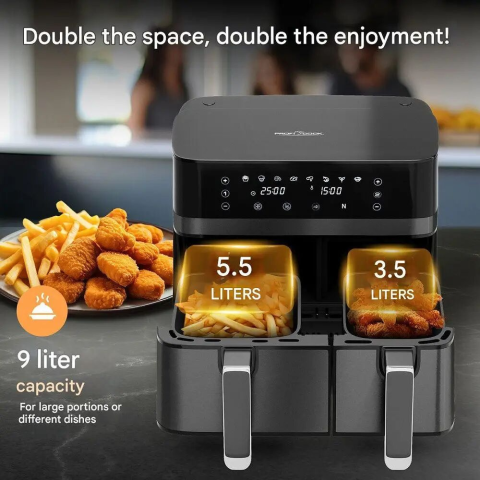 Proficook Dupla Forrólevegős Fritőz: Egészséges Sütési Élmény 🍟💨 Készítsen finomabb és egészségesebb ételeket a Proficook dupla forrólevegős fritőzével! Ez a 9 literes (5,5 + 3,5 liter) készülék lehetővé teszi, hogy egyszerre több ételt készítsen,...