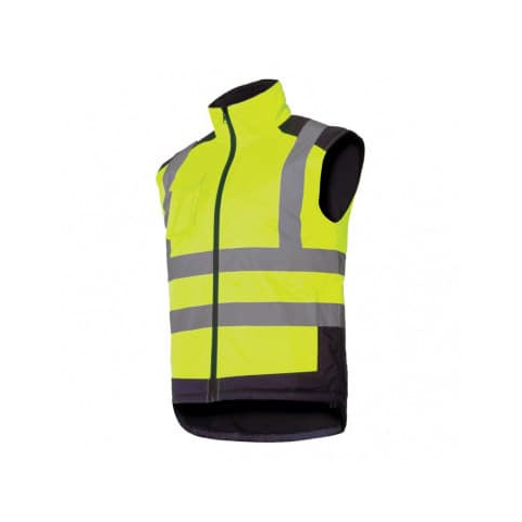 • Külseje: 100% poliészter Oxford 300D, poliuretán (PU) membránnal borítva, 180 g/m². Szigetelés: 100% poliészter 160 g/m². Bélése: polár anyag, 100% poliészter 220 g/m². • Fényvisszaverő sávok.Vízálló varrások. 6 zseb, melyek közül 5 cipzárral zárható (3 külső és 2 belső). Állítható derékrész • NORMA: EN ISO 13688, EN ISO 20471