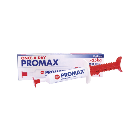 Összetevők: növényi olaj, hidrolizált búza fehérje, élesztő Adalékanyagok: E 1707 Enterococcus faecium DSM, E 556 Bentonit-montmorillonit Célállat faj: Kutya Javallat: A Promax paszta olyan kombinált, immunstimuláns bélflóra regeneráló táplálékkiegészítő kutyáknak, amely jótékony mikroorganizmusok mellett tartalmaz speciális szuper abszorbens al