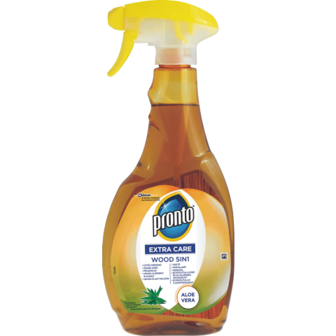 A Pronto Wood 5in1 Aloe Vera Bútorápoló- és tisztító spray aloe vera tartalmával gyengéden ápol, miközben gondoskodik a portalan tisztaságról, és megőrzi a bútorok természetes szépségét. Segít eltávolítani a foltokat, és az allergének 90%-át.