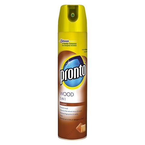 Felülettisztító, spray, 0,25 l, PRONTO Classic Wood (UJ1545) -bútorápoló aeroszol egyedülálló formulával: mindennapi favédelem -fokozza a fa bútorok természetes fényét -eltávolítja az ujjlenyomatokat, zsírfoltokat és ragacsos szennyeződéseket -keves