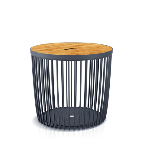 1 kép PROSPERPLAST Clubo Multifunkciós Tárolókosár Antracit Fa Tetővel 45 cm, 5db-os csomag
