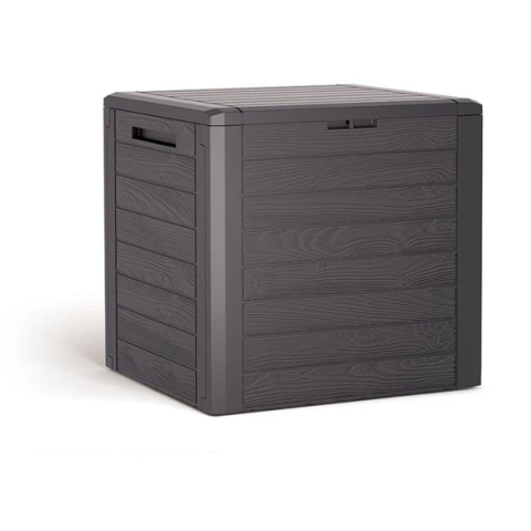 Kerti doboz szellőzéssel, alkalmas játékok vagy egyéb tárgyak kültéri tárolására. Lakattal biztosítható. Könnyen összeszerelhető. A Prosperplast Woodebox kerti box egy praktikus kültéri segítő. A fa hatású kialakításának köszönhetően kertjének, teraszá
