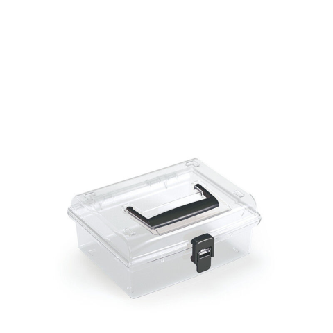 1 kép PROSPERPLAST NUF Átlátszó Műanyag Rendszerező Doboz Fekete Fogantyúval, 40db-os csomag