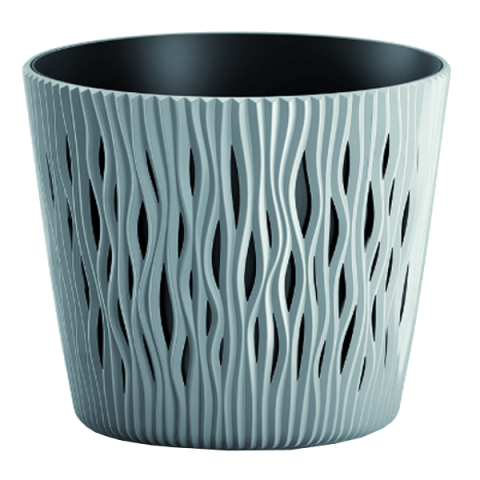 Magas minőségű, különleges mintázatú műanyag kaspó, szürke színben.