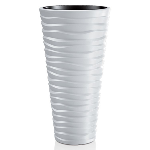 1 kép PROSPERPLAST Virágcserép SAND Slim 400, 390 x 750 mm, fehér, betét
