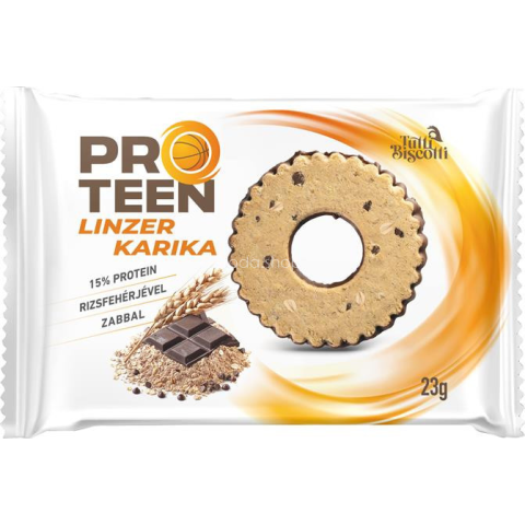 Linzer karika, 23 g, PROTEEN, rizsfehérjével és zabbal ProTeen Linzer karika - Magas fehérjetartalmú linzertészta kakaós bevonótalppal.