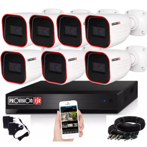 7 kamerás Provision biztonsági kamera rendszer 2MP Full HD felbontás, 40 m látótávolság kültéri használatra Fedezze fel a Provision AHD-36 megfigyelő kamera rendszert, amely otthoni és irodai biztonság növelésére ideális. A csomag hét 2 megapixeles, full