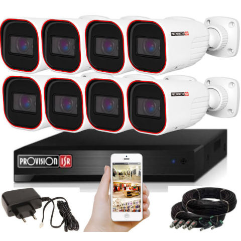 8 kamerás Provision biztonsági kamera rendszer 2MP Full HD felbontás, 40 m látótávolság kültéri használatra Fedezze fel a Provision AHD-36 megfigyelő kamera rendszert, amely otthoni és irodai biztonság növelésére ideális. A csomag nyolc 2 megapixeles, ful