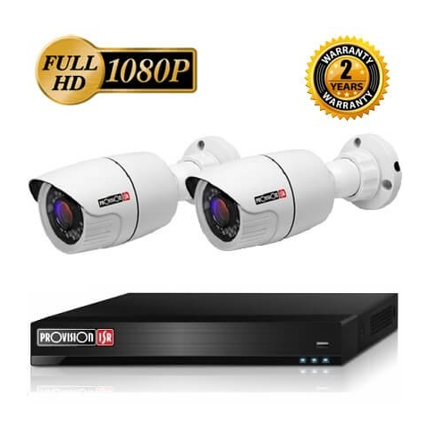 Provision Full HD 2 kamerás IP kamera rendszer 2 megapixeles felbontással 2 Megapixeles Provision 1 nagy tömb ledes szett: biztonsági kamerával FULL HD 1920x1080 felbontás fehér színű kültéri fémház, 4 csatornás 5 megapixeles NVR rögzítő, 10 méteres
