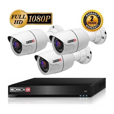 Provision Full HD 3 kamerás IP kamera rendszer 2 megapixeles felbontással 2 Megapixeles Provision 1 nagy tömb ledes szett: biztonsági kamerával FULL HD 1920x1080 felbontás fehér színű kültéri fémház, 4 csatornás 5 megapixeles NVR rögzítő, 10 méteres