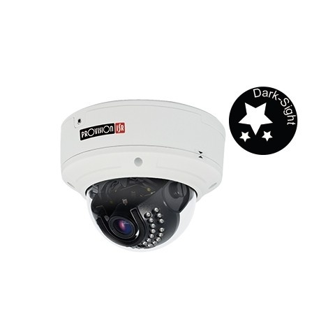 PROVISION-ISR Dark-Sight inframegvilágítós kültéri vandálbiztos 5 megapixeles IP dome kamera, 2592x1944/2688x1520/2048x1536/1920x1080/1280x960/1280x720 felbontás valós időben (30fps), H.264/H.265 tömörítés, ONVIF, 1/1,8 Sony CMOS képérzékelő, 3,3-10,5 mm