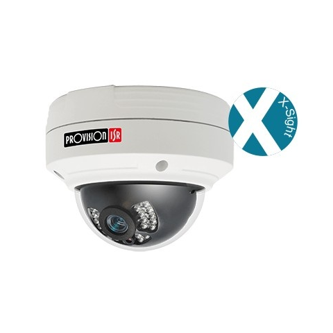 PROVISION-ISR X-Sight inframegvilágítós kültéri vandálbiztos 2 megapixeles IP dome kamera, 1920x1080/1280x720/640x480/320x240 felbontás, H.264+ tömörítés, ONVIF, 1/3 CMOS képérzékelő, 3,6 mm lencse, mechanikus Day&Night, minimális megvilágítás 0 Lux (IR