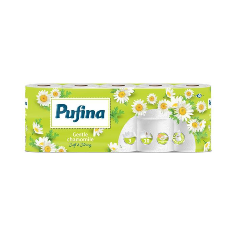 1 kép PUFINA Toalettpapír, 3 rétegű, kistekercses, 10 tekercs, PUFINA "Chamomile", kamilla illattal