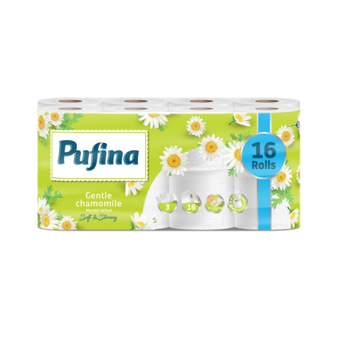 1 kép PUFINA Toalettpapír, 3 rétegű, kistekercses, 16 tekercs, "Chamomile", kamilla illattal (KHH869) (KHH869)