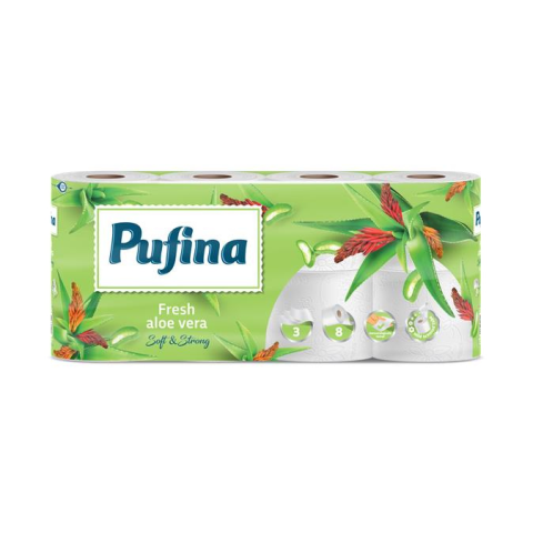 1 kép PUFINA Toalettpapír, 3 rétegű, kistekercses, 8 tekercs, PUFINA Aloe Vera