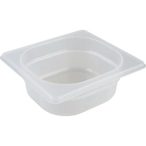 Átlátszó GN 1/4 Pujadas gastro edény polipropilénből készült, méretei 265 x 162 mm, magassága 65 mm. Űrtartalom: 1650 ml. Ideális éttermek, hotelek és rendezvényszolgáltatások számára.