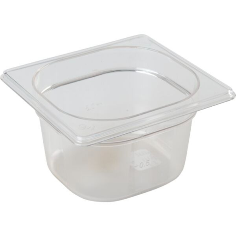 Átlátszó GN edény 1/9 méretben (176x108 mm), tartós polikarbonátból készült. Az edény magassága 65 mm és űrtartalma 540 ml. Ideális professzionális konyhák, catering és éttermek számára az ételek tárolására és bemutatására.