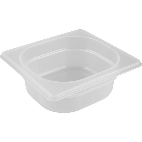 Átlátszó Pujadas GN 1/6 gasztroedénye, méretei 176x162 mm és magassága 150 mm. Tartós polipropilénből készült, ideális professzionális vendéglátóipari üzemekhez, éttermekhez, hotelekhez és cateringhez. Alkalmas ételek tárolására és bemutatására.
