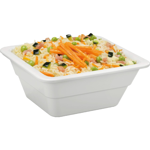 Fehér GN 1/6 gasztronorm edény Pujadas Classic. Melaminból készült, pala utánzatú kivitel, tartósabb és kevesebb karbantartást igényel. Méretek: mélység 65 mm, magasság 65 mm. Mosogatógépben mosható. A Pujadas spanyol, professzionális gasztronómiai felszereléseket gyártó cég.