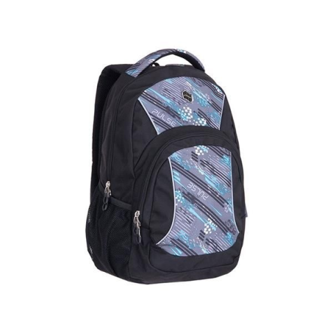 Termékjellemzők: - Pulse hátizsák. - Rekeszek: 1 nagy belső rekesz, 1 elülső rekes, 2 oldaló rekesz. - Banán formájú vállszíjak. - Hátrésze légáteresztő anyagból készült, habszivaccsal. - Három rétegű, dupla aljzat. - Fém cipzár. - Anyag: 600d poliészte