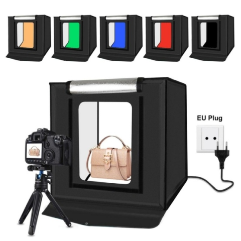 PULUZ 40 cm Összecsukható Hordozható 24W 5500K Studio Termékfotó foto-doboz, tárgyfotó-sátor Fotobox + 12 színű háttér - EU fali csatlakozóval Készíts professzionális tárgyfotókat, termék képeket ! A Puluz 400x400 mm-es összecsukható 24W 5500K fotosátorba