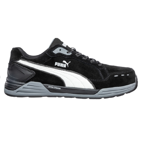 Puma Airtwist BlackLow S3 ESD HRO SRC munkavédelmi cipőAz új Urban Effect család tagja: A Puma Airtwist BlackLow S3 ESD HRO SRC munkavédelmi cipő ideális választás a modern munkakörnyezethez, ahol a biztonság és a kényelem egyaránt fontos.Főbb jellemzők:Üvegszálas orrmerevítő: Kiváló védelem a lábujjak számára.FAP® lite kompozit talpátszúrás elleni védelem: Extrém szakadásbiztos és rugalmas védelem.Vízlepergető, velúrbőr felsőrész: Tartósság és vízál
