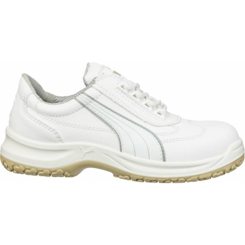 PUMA WHITE 'N SERVICE CLARITY LOW biztonsági cipőAz IQ.CELL technológia különlegessége: A PUMA WHITE 'N SERVICE termékcsaládja az IQ.CELL technológiával ellátott, amely egy közvetlenül a sarokrészbe ágyazott gélpárna. Ez trambulinként működik, elnyeli az ütéseket, majd visszapattanás formájában azonnal visszaadja az energiát.Főbb jellemzők:Kopásálló, rugalmas és könnyű külső talp: Speciális méhsejt szerkezetének köszönhetően elvezeti az állóf
