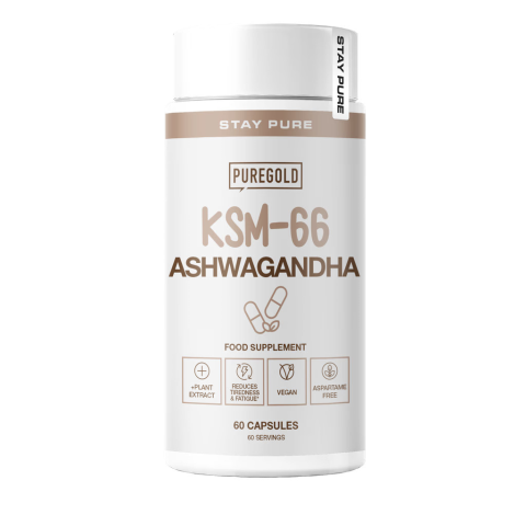 A PureGold Ashwagandha kapszula KSM-66® ashwagandha kivonatot, ginzenget, zöld teát és B6-vitamint tartalmaz, amelyek hozzájárulhatnak a fáradtság csökkentéséhez és a vitalitás megőrzéséhez. Vegán, aszpartám-mentes összetételével ideális választás a minde