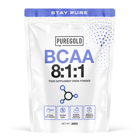 A PureGold BCAA 8:1:1 - Raspberry egy cukormentes, frissítő málna ízű italpor, amely adagonként 5 g BCAA-t, vitaminokat és káliumot tartalmaz az izomműködés, az immunrendszer és a fáradtság csökkentésének támogatására. Könnyen oldódó, aszpartám-mentes for