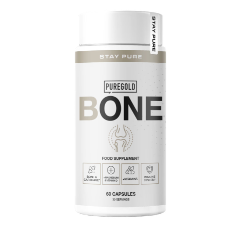 A PureGold Bone Support kapszula hidrolizált tengeri halkollagénnel, magnéziummal, D-vitaminnal és C-vitaminnal támogatja a csontok és porcok normál állapotát, valamint az immunrendszer működését. Gondosan összeállított formulája napi két kapszulában bizt