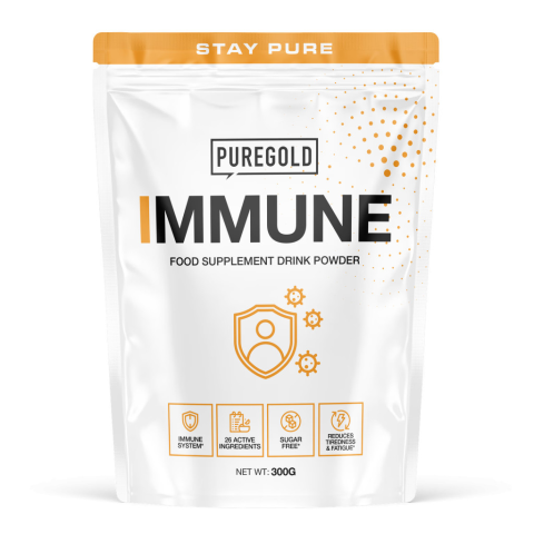 A PureGold Immune Support - Orange Juice ízesített italpor 26 aktív összetevővel – köztük kollagénnel, inulinnal, vitaminokkal és ásványi anyagokkal – támogatja az immunrendszer normál működését és csökkenti a fáradtságot. Cukormentes, élelmi rostban gazd