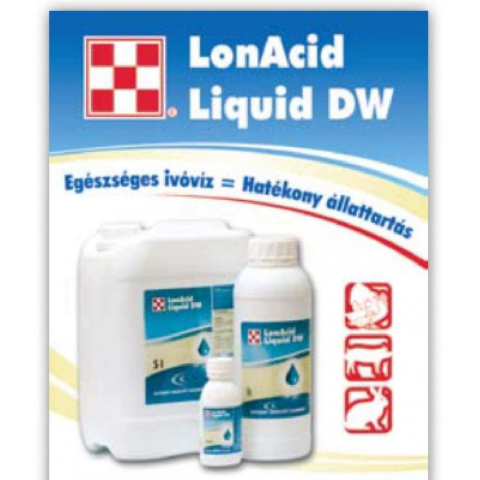 A LonAcid Liquid DW itatóvíz savanyító készítmény magas minőségű folyékony termék, melyet különböző szerves savak alkotnak. A LonAcid Liquid DW nem agresszív, nem korrozív és nem teszi tönkre a fehérjéket vagy a vitaminokat. Közvetlen antimikrobiális hatá