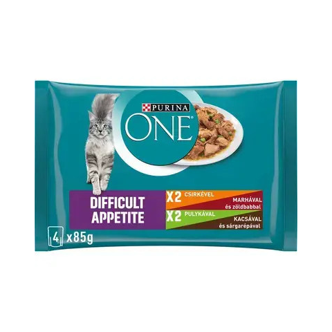 1 kép Purina One Difficult Appetite csirkével és pulykával nedves macskaeledel 4*85gr