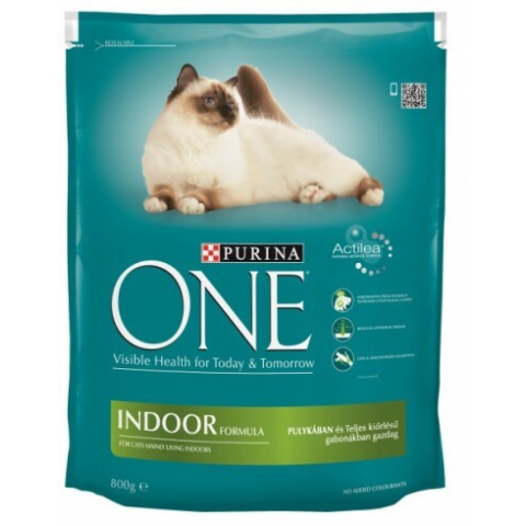Purina ONE Száraz Macska Indoor Pulyka+Teljes Kiőrlésű Gabonák 800g macskaeledel termékleírás